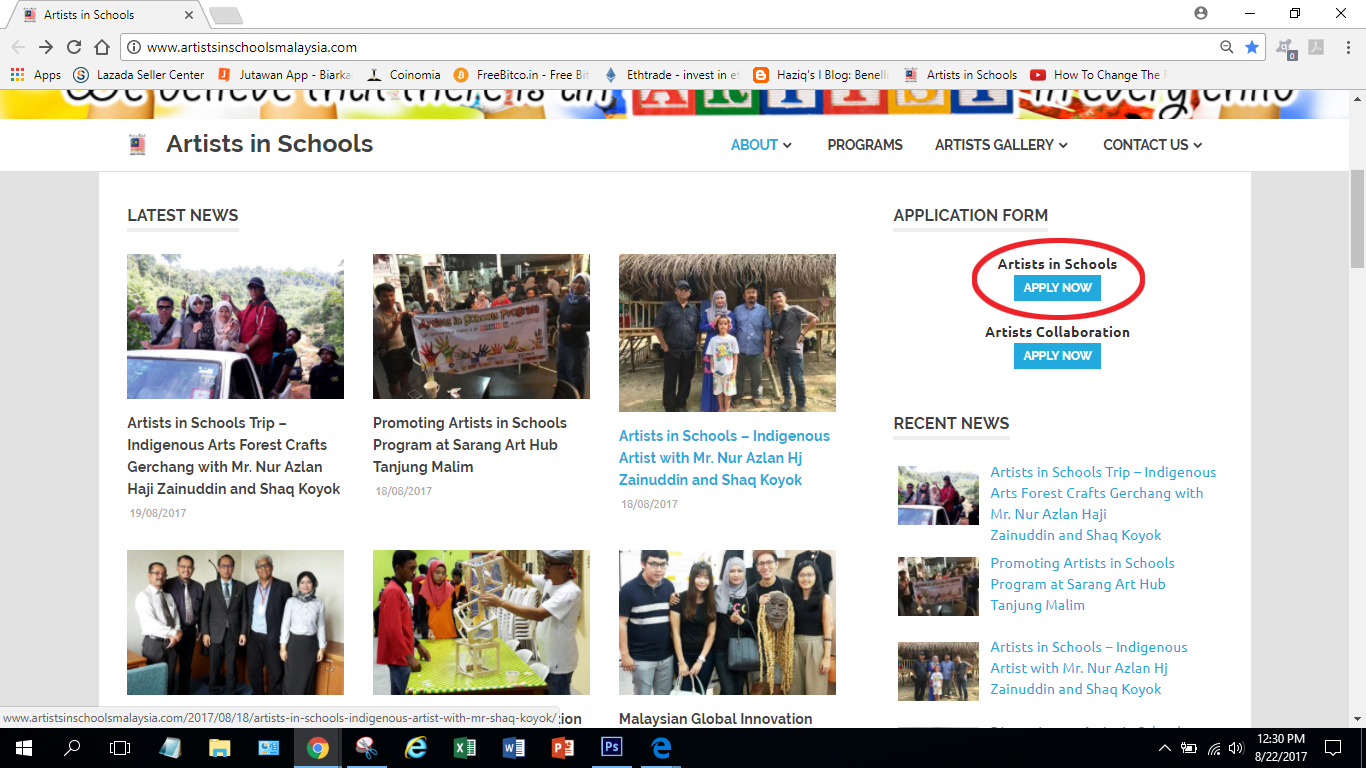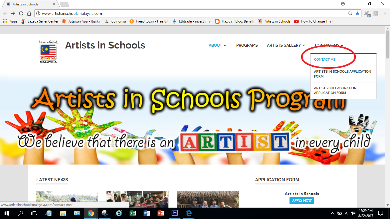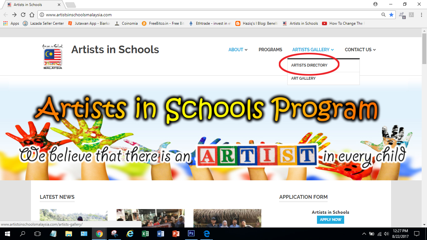 ‘Artists in Schools Program and Artists Collaboration‘ online application form