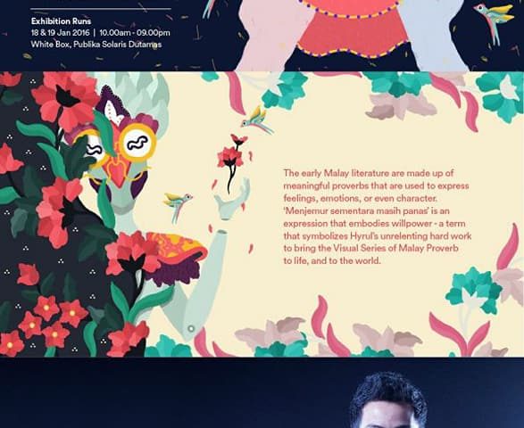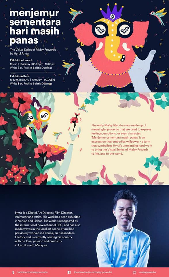 Multi-talented digital art director, film director, animator and artist Hyrul Anuar turns traditional Malay proverbs into colorful works of art at White Box Publika, Mont Kiara.